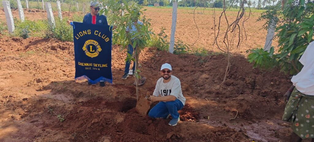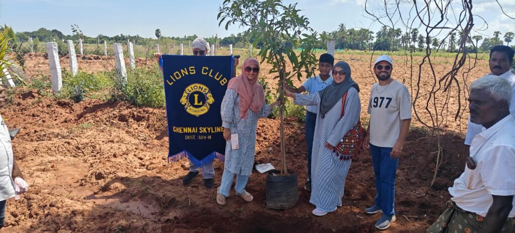 Lions Club of Chennai Skyline proudly organized an Environment Project β€” planting 1,000 tree saplings at Danwoods Farms, Kadukalur, Kanchipuram District – 603401, Tamil Nadu.