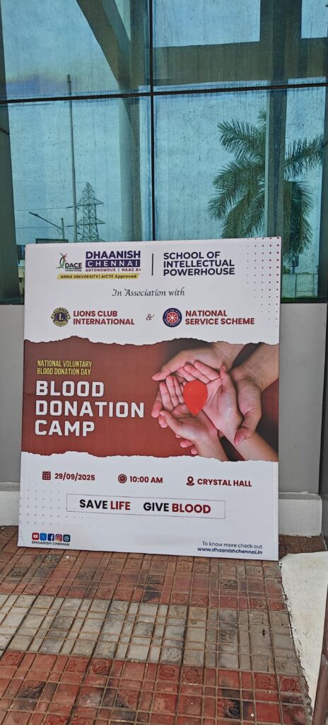 The Lions Club of Chennai Skyline, in collaboration with the National Service Scheme (NSS) Cell of Dhaanish Ahmed College of Engineering, Padappai, Chennai and the Lions Blood Bank, District 3241C, Chennai, successfully organized a Blood Donation Camp on the college campus. The event, held with the wholehearted participation of students and staff, reinforced the Club’s ongoing commitment to saving lives and fostering a culture of service among the youth.