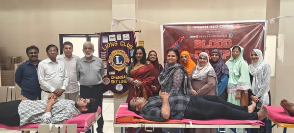 In a remarkable display of community service and compassion, the Lions Club of Chennai Skyline, in association with The New College, Youth Red Cross and Government Royapettah Hospital, Chennai, successfully organized a Blood Donation Camp that resulted in the collection of 148 units of blood — a powerful contribution toward saving countless lives.